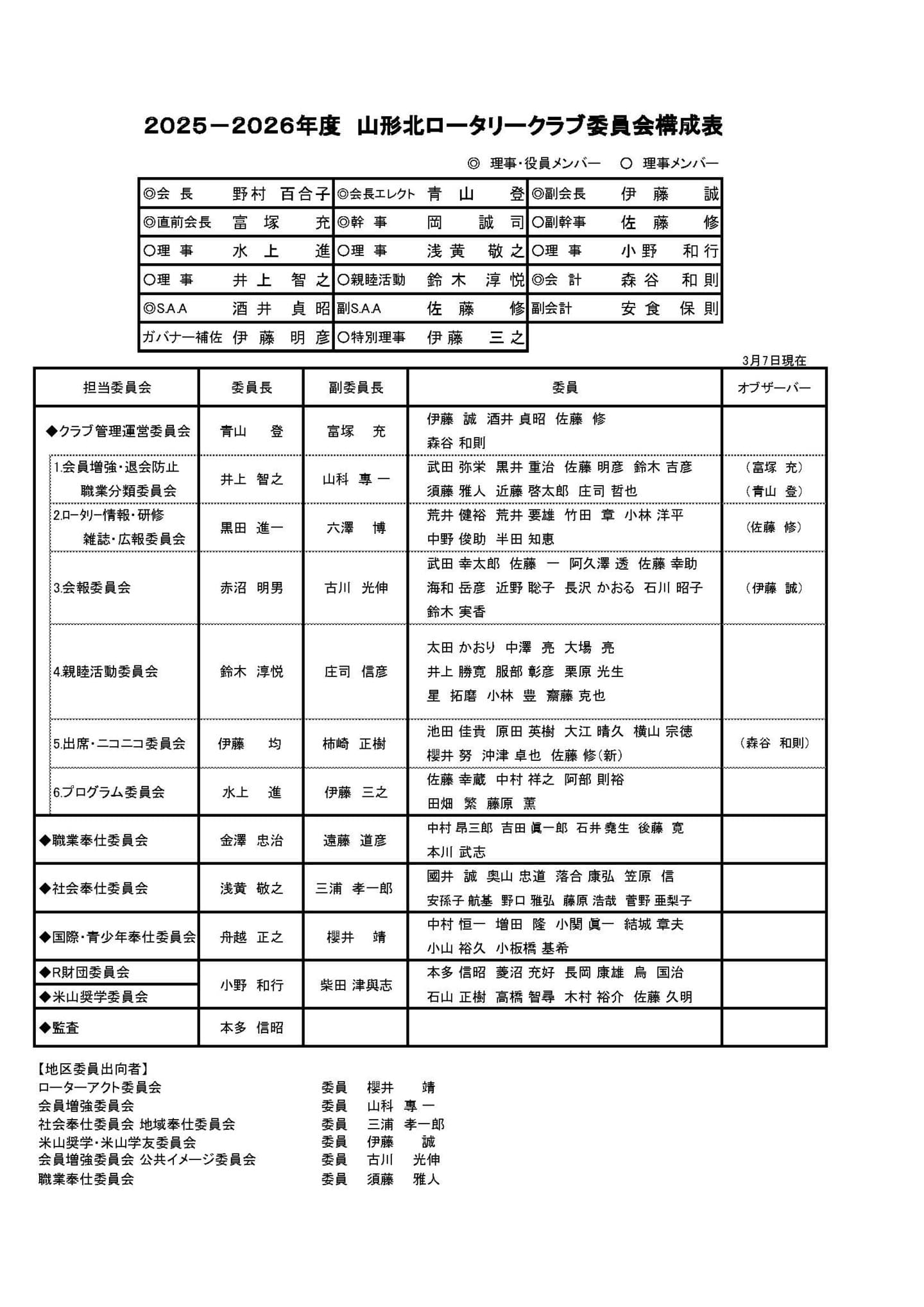 | 山形北RC会員名簿(2026,3) | ||||||