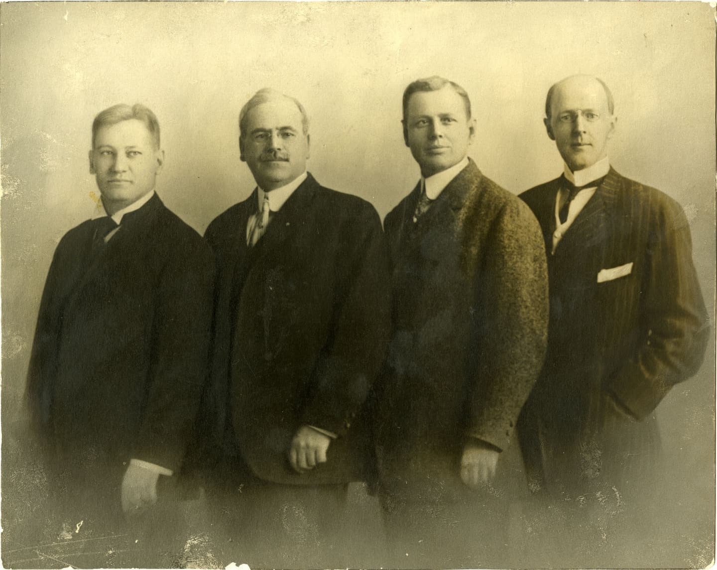 最初の4人のロータリアン:(左から)ガスターバス・ローア、シルベスター・シール、ハイラム・ショーレー、ポール P. ハリス(1905~1912年頃)